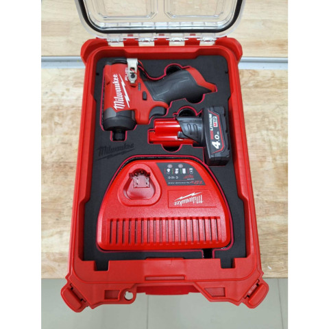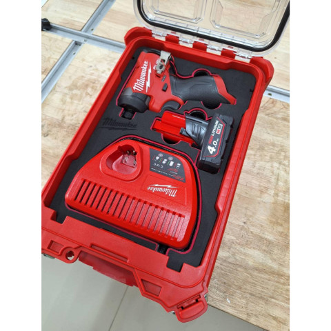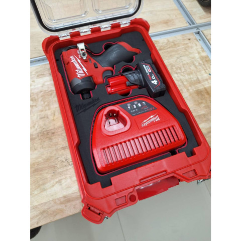 Milwaukee M12 FID2 SET ชุดสุดคุ้มสำหรับงานขัน-คลายที่ต้องการความคล่องตัวและแรงบิดจัดจ้านในขนาดกะทัดรัด มาพร้อมเครื่องมือ แบตเตอรี่แท้ ชาร์จเจอร์ และกล่อง PACKOUT รุ่น 48-22-8435 พร้อมโฟมจัดวางตามภาพ ช่วยจัดเก็บเป็นระเบียบ พกพาง่าย และปกป้องอุปกรณ์ได้ดี เหมาะทั้งช่างมืออาชีพและงานติดตั้งทั่วไป