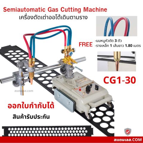 เครื่องตัดออโต้ เครื่องตัดแก๊สเดินตามราง 1หัว รุ่น CG1-30 พร้อมรางยาว 1.8 เมตร ช่วยให้งานตัดเหล็กด้วยแก๊สทำได้ ตรง เรียบ สม่ำเสมอ ลดความคลาดเคลื่อนจากการตัดมือ เหมาะสำหรับงานช่าง งานโครงสร้าง งานซ่อมบำรุง และงานโรงงานที่ต้องการความเร็วและความแม่นยำในการตัด