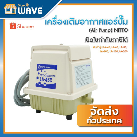 เครื่องเติมอากาศแอร์ปั๊ม (Air Pump) NITTO รุ่น LA80 คุณภาพระดับ No.1 in Japan ด้วยระบบลูกสูบที่ออกแบบมาเพื่อการทำงานต่อเนื่อง ทนทาน คุ้มค่า เหมาะทั้งงานบำบัดน้ำเสียและงานให้ออกซิเจนในระบบต่าง ๆ ใช้งานได้มั่นใจ พร้อมรับประกัน 1 ปี