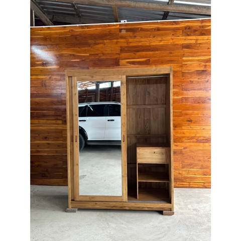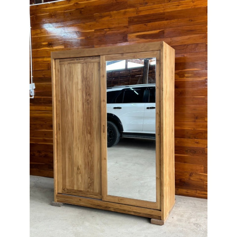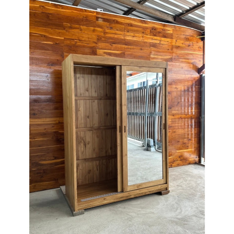 ตู้บานเลื่อนช่วยประหยัดพื้นที่ เปิด-ปิดคล่องตัว เหมาะกับห้องที่มีพื้นที่จำกัด แต่ยังต้องการความจุในการจัดเก็บเสื้อผ้าอย่างเป็นระเบียบ วัสดุ ไม้สักทอง ขึ้นชื่อเรื่องความแข็งแรง ทนทาน ใช้งานได้นาน และลายไม้สวยเป็นเอกลักษณ์