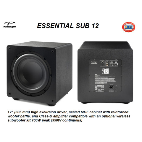 PARADIGM ESSENTIAL SUB 12 ซับวูฟเฟอร์ขนาด 12 นิ้ว ที่ออกแบบมาเพื่อยกระดับมิติเบสให้ “ลึก หนัก แน่น” สำหรับทั้งดูหนังและฟังเพลง ด้วยไดรเวอร์แบบ High-Excursion ในตู้ปิด (Sealed) โครง MDF แข็งแรง พร้อมภาคขยาย Class‑D ให้พลังสูงสุด 700W Peak (350W Continuous) ถ่ายทอดแรงปะทะฉากแอ็กชันและรายละเอียดปลายต่ำได้อย่างมั่นใจในพื้นที่ใช้งานทั่วไปภายในบ้าน