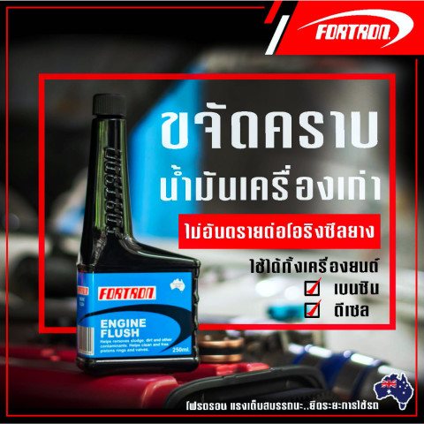 Engine Flush: เติมลงในถังน้ำมันเครื่อง → สตาร์ทเครื่องทิ้งไว้ 10–15 นาที → ถ่ายน้ำมันเครื่องตามปกติ