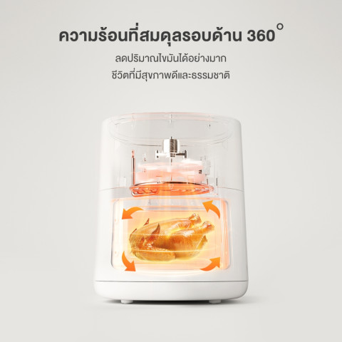 ระบบลมร้อนหมุนเวียน กระจายความร้อนสม่ำเสมอ ช่วยให้อาหารสุกไว กรอบนาน และใช้น้ำมันน้อยลง