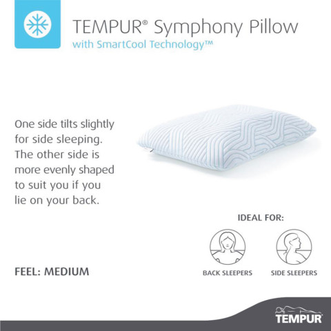 เลือก TEMPUR® Symphony Pillow with SmartCool Technology™ S หากคุณต้องการหมอนที่รองรับได้ลงตัวทั้งหงายและตะแคง พร้อมความนุ่มสบายและความเย็นสดชื่นในทุกคืนที่พักผ่อน