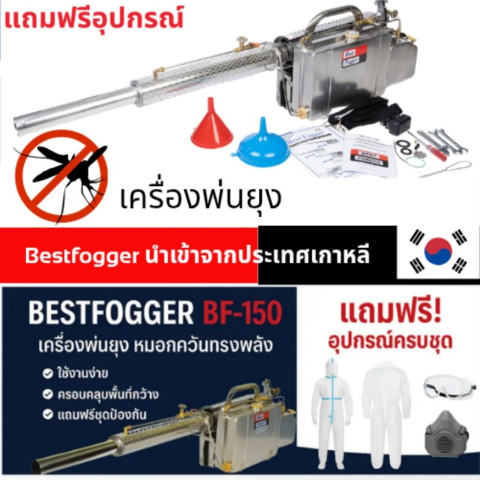 เครื่องพ่นยุง Best Fogger รุ่น BF150 (แบรนเกาหลีแท้) รับประกัน ราคา 23,540.00 บาท คืออุปกรณ์พ่นกำจัดแมลงบินประสิทธิภาพสูง เหมาะสำหรับงานควบคุมยุงลาย แมลงวัน และแมลงพาหะในพื้นที่กว้าง ใช้งานได้ทั้งโหมด พ่นหมอกควัน (Fogging) และ พ่นละอองฝอย (ULV) ปรับการพ่นได้สะดวกด้วยการหมุนวาล์ว ให้ละอองกระจายสม่ำเสมอ ครอบคลุมพื้นที่ และช่วยลดปัญหาแมลงรบกวนได้อย่างมีประสิทธิภาพ