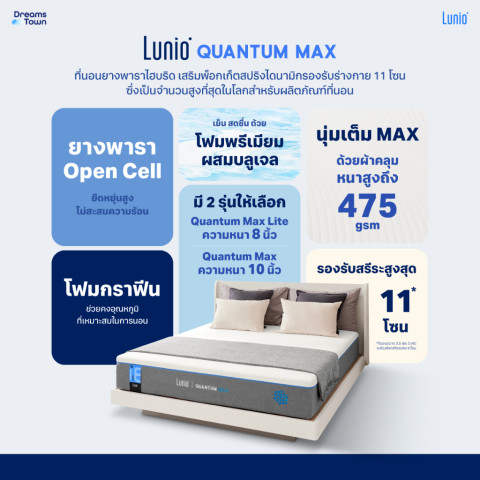 Lunio ที่นอนยางพาราอัลตร้าไฮบริด เสริมพ็อกเก็ตสปริง รุ่น Quantum Max (ขนาด 3.5 ฟุต หนา 10 นิ้ว)