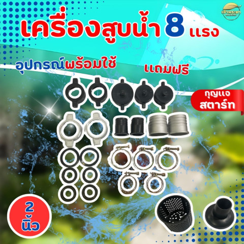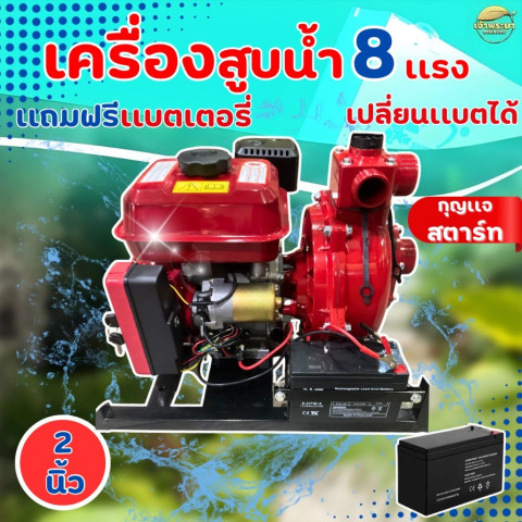 เครื่องสูบน้ำแรงดันสูง 8 แรง 2 ใบพัด รุ่น 2 นิ้ว กุญแจสตาร์ท รุ่นใหม่ล่าสุด สำหรับงานสูบน้ำหนักๆ ที่ต้องการทั้ง “ส่งสูง” และ “ส่งไกล” โดยเฉพาะงานส่งขึ้นเขา/พื้นที่ต่างระดับ ให้แรงดันสม่ำเสมอ ส่งสูงได้ถึง 65 เมตร และส่งไกลได้ประมาณ 1,000 เมตร พร้อมความสะดวกด้วยระบบ กุญแจสตาร์ท และแถมฟรีแบตเตอรี่ 8 แอมป์ พร้อมใช้งานทันที คุ้มค่าในราคา 5,810.30 บาท