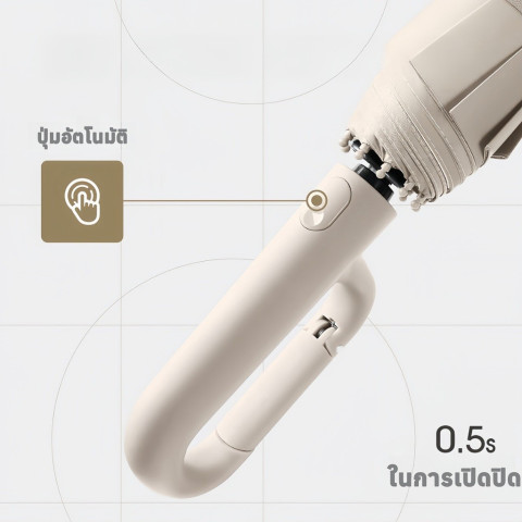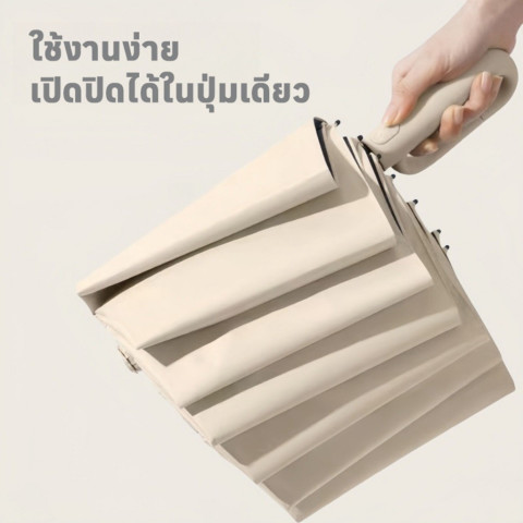 กดปุ่มปิด ร่มจะหุบอัตโนมัติ (ไม่ควรใช้มือดันผ้าร่ม)