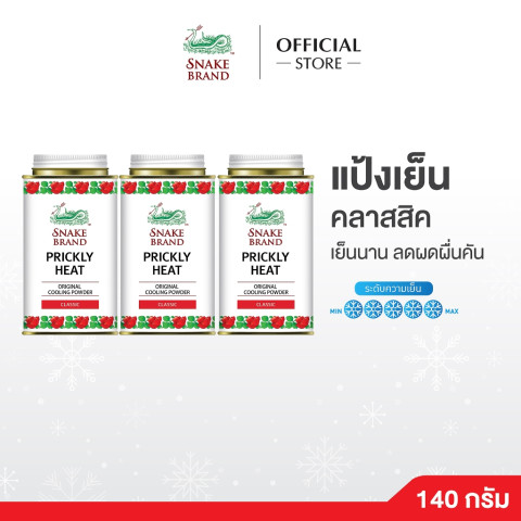 Snake Brand แป้งเย็นตรางู ปริกลี่ฮีท คลาสสิค ขนาด 140 กรัม (แพ็ค 3 กระป๋อง) ราคา 104.76