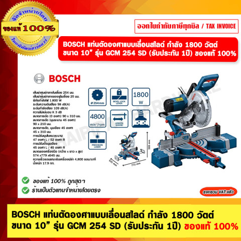 BOSCH แท่นตัดองศาแบบเลื่อนสไลด์ 10” รุ่น GCM 254 SD กำลัง 1800W ของแท้ 100% พร้อมรับประกัน 1 ปี ในราคาคุ้มค่า 13,219.00 บาท เหมาะสำหรับงานไม้และงานติดตั้งที่ต้องการความเที่ยงตรง ตัดได้เรียบ คม และรวดเร็ว ด้วยระบบเลื่อนสไลด์ที่ช่วยเพิ่มระยะการตัด รองรับงานตัดชิ้นงานกว้างได้สบาย ทั้งงานเฟอร์นิเจอร์ บัวพื้น กรอบวงกบ และงานเข้ามุมต่างๆ