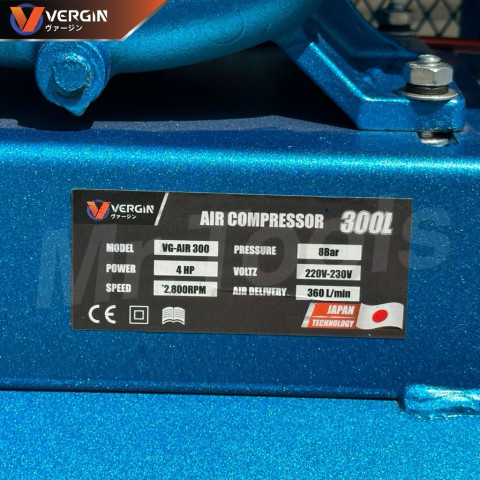 VERGIN ปั๊มลมสายพานโรตารี่ 300 ลิตร (มอเตอร์ 4 แรงม้า 3 สูบ) รับประกัน 2 ปี