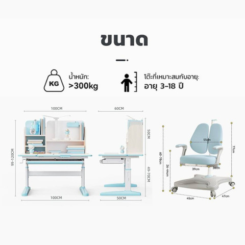 เหมาะสำหรับ เด็กวัยอนุบาลถึงมัธยม (3-15 ปี) ที่ต้องการโต๊ะเรียนปรับระดับได้ ใช้งานจริงจัง พร้อมเก้าอี้ที่ช่วยจัดท่านั่งให้ถูกต้อง เพื่อการเรียนที่มีสมาธิและเป็นระบบมากขึ้นในทุกวัน