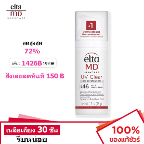 Elta MD UV Clear SPF 46 EltaMD กันแดดหน้าระดับตำนาน รุ่น Best Seller ในสหรัฐอเมริกา ที่ช่วยปกป้องผิวจากแสงแดดอย่างมีประสิทธิภาพ พร้อมฟินิชสบายผิว ใช้ได้ทุกวัน เหมาะกับคนที่ต้องการกันแดดที่ “ทาแล้วผิวดูดี” ไม่หนักหน้า