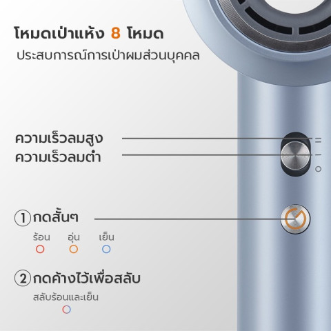 อุณหภูมิ: เย็น / อุ่น / ร้อน / วงจรร้อน-เย็น ช่วยเซ็ตทรงและถนอมผม