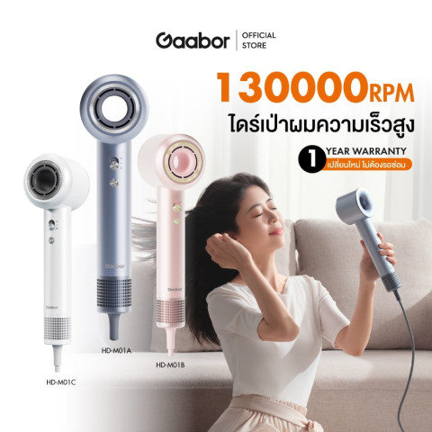 【NEW ARRIVAL】Gaabor ไดร์เป่าผมไอออนลบ 680 ล้าน รุ่น HD-M01B ไดร์ความเร็วสูงระดับพรีเมียม เป่าแห้งไวเป็นพิเศษ พร้อมดูแลเส้นผมให้ดูนุ่มลื่น เงางาม ลดชี้ฟูและไฟฟ้าสถิต เหมาะสำหรับคนที่ต้องการความเร็ว ความเงียบ และการถนอมเส้นผมในเครื่องเดียว