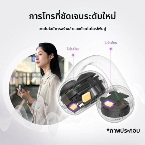 ดีไซน์คลิปแบบเปิด ใส่สบาย ไม่อึดอัด พร้อมรับรู้เสียงรอบข้าง เพิ่มความปลอดภัยขณะใช้งานนอกบ้าน