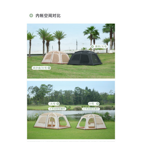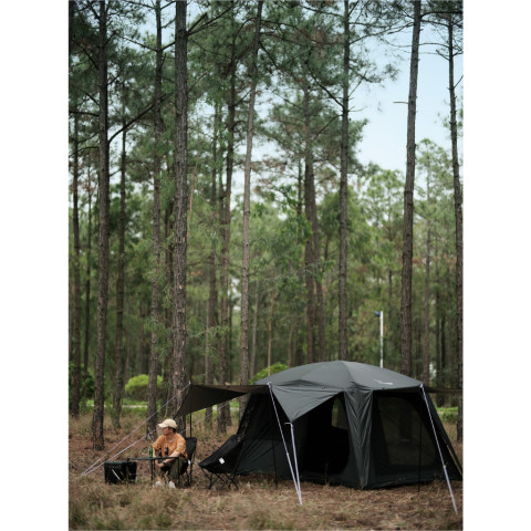 รุ่น L รองรับประมาณ 6–8 คน พร้อม 2 ห้องนอน และ ซิปกั้นห้อง เพิ่มความเป็นส่วนตัว เหมาะกับครอบครัวหรือกลุ่มเพื่อนกันฝน พร้อมลุยทุกสภาพอากาศ