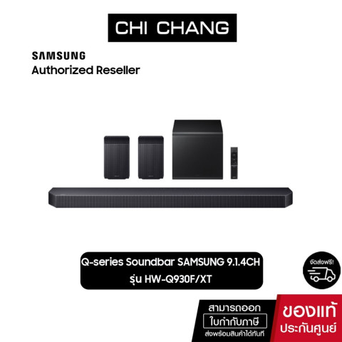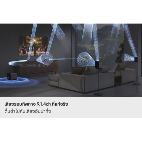 Samsung ซาวด์บาร์ Q930F 9.1.4ch พร้อม Subwoofer & Rear Speaker รุ่น HW-Q930F/XT (NEW 2025) ยกระดับความบันเทิงในบ้านให้เหมือนอยู่ในโรงภาพยนตร์ด้วยระบบเสียงเซอร์ราวด์รอบทิศทางแบบเต็มรูปแบบ True 9.1.4CH Full Surround เติมมิติความสมจริงทั้งด้านหน้า ด้านข้าง ด้านหลัง และเสียงจากด้านบน พร้อมลำโพงคู่หลังแบบ Up-firing ที่ทำให้เอฟเฟกต์ Atmos โอบล้อมคุณได้อย่างน่าทึ่ง เหมาะทั้งดูหนัง เล่นเกม และฟังเพลงแบบพรีเมียมในห้องนั่งเล่นของคุณ