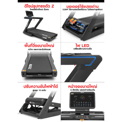 ลู่วิ่งไฟฟ้า IRONTEC รุ่น ENGINE (S560) ลู่วิ่งระดับจริงจังสำหรับบ้านและโฮมยิม ดีไซน์หรู โครงสร้างใหญ่ทรงตัว Z มั่นคง พื้นที่วิ่งกว้างยาวระดับฟิตเนส พร้อมมอเตอร์ Brushless 5.0HP ที่เงียบ ทน ใช้งานต่อเนื่องได้ยาวนาน และแทบไม่ต้องบำรุงรักษา เสริมบรรยากาศการออกกำลังกายด้วย ไฟ LED เปลี่ยนสีตามความเร็ว ให้ทุกการวิ่งสนุกและมีแรงบันดาลใจมากขึ้น