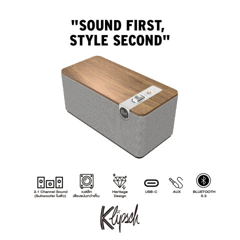 Klipsch The One Plus ลำโพงตั้งโต๊ะสไตล์ Heritage ที่รวมความคลาสสิกของงานดีไซน์เข้ากับพลังเสียงแบบ 2.1 ได้อย่างลงตัว ให้โทนเสียงแน่น รายละเอียดชัด เบสลึกกำลังดี เหมาะทั้งฟังเพลง ทำงาน ดูหนัง หรือเติมบรรยากาศให้มุมโปรดของคุณด้วยเสียงระดับพรีเมียมในขนาดกะทัดรัด