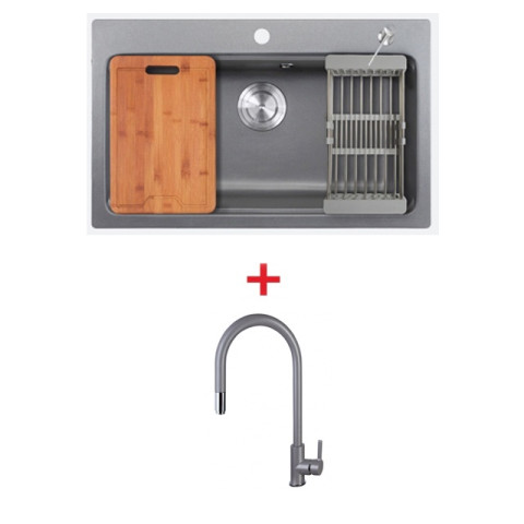 อ่างล้างจานหินแกรนิต รุ่น ANDES 760/480 GREY มาพร้อม ก๊อกน้ำ รุ่น AZTAC II GREY โทนสีเทาเข้าชุดกันอย่างลงตัว ช่วยยกระดับพื้นที่ครัวให้ดูทันสมัย แข็งแรง และใช้งานได้คล่องตัว ตอบโจทย์ทั้งการล้างจานและเตรียมวัตถุดิบในทุกวัน พร้อมของแถมครบชุด ใช้ได้จริงตั้งแต่วันแรกที่ติดตั้ง