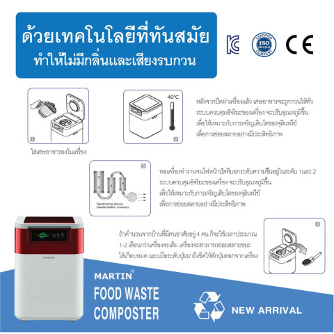 โปรเเรงกระเเทกใจ รับสิ้นปี! MARTIN เครื่องกำจัดขยะเศษอาหารให้เป็นปุ๋ย ภายใน 24 ชม. (ความจุ 3 กก./วัน) สีแดง