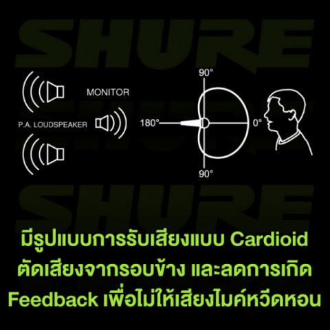 ดีไซน์แบบ Dynamic และทิศทางรับเสียง Cardioid ทำให้ SM58S โฟกัสเสียงจากด้านหน้าได้อย่างเต็มประสิทธิภาพ ลดเสียงรบกวนจากด้านข้างและด้านหลัง เหมาะอย่างยิ่งกับเวทีที่มีเสียงรอบข้างเยอะ หรือห้องประชุมที่ต้องการความคมชัดของเสียงเป็นพิเศษ พร้อมสวิตช์เปิด/ปิดบนตัวไมค์ที่ใช้งานง่าย สะดวกต่อผู้บรรยายและนักร้องในการควบคุมการรับเสียงด้วยตัวเอง