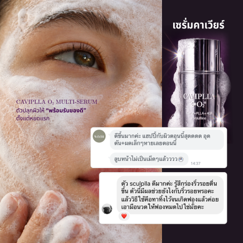 ด้วย Oxygen Caviar Technology เมื่อทาลงบนผิวจะเกิด ฟองออกซิเจน ช่วยปลุกผิวให้ตื่นทันที กระตุ้นการไหลเวียน และเพิ่มประสิทธิภาพการซึมของสกินแคร์ในขั้นต่อไป ให้การบำรุงทำงานได้เต็มที่ยิ่งขึ้น พร้อมผสานการทำงานของ PLLA (Poly-L-Lactic Acid) ช่วยฟื้นฟูผิวในระดับโครงสร้าง ให้ผิวดูแน่น เรียบละเอียด อิ่มฟู แข็งแรง และดูใสแบบผิวกระจกอย่างเป็นธรรมชาติ