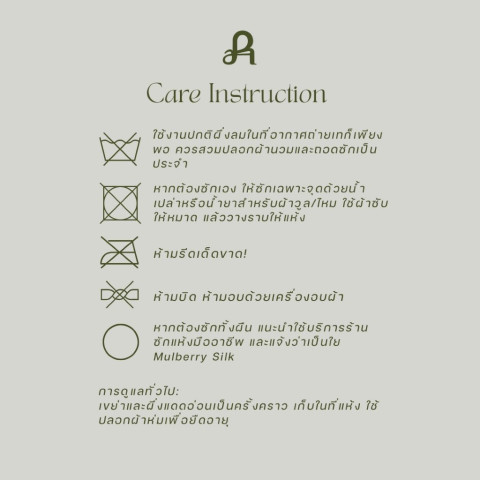 วัสดุไส้ใน: ใยไหม Mulberry Silk ธรรมชาติ 100%