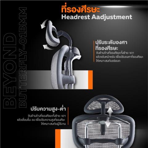 ปรับระดับความสูงของที่รองคอ (Headrest height adjustment) – รองรับศีรษะและต้นคอ ลดอาการตึงกล้ามเนื้อ