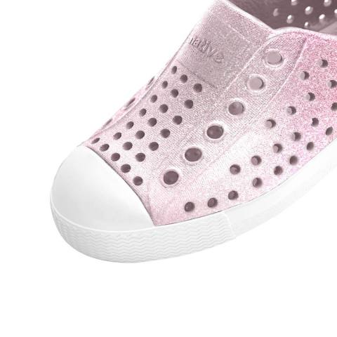 เติมความสนุกให้ทุกย่างก้าวของเด็กน้อยด้วย Native รองเท้ากันน้ำเด็กเล็ก EVA รุ่น Jefferson Bio Bling Barely Samba Bling/ Shell White รองเท้ารุ่นซิกเนเจอร์ที่ผสานดีไซน์สุดคลาสสิกเข้ากับลูกเล่นวิบวับสไตล์ Bling เหมาะสำหรับคุณหนูที่ชอบทั้งความน่ารักและความคล่องตัวในคู่เดียว