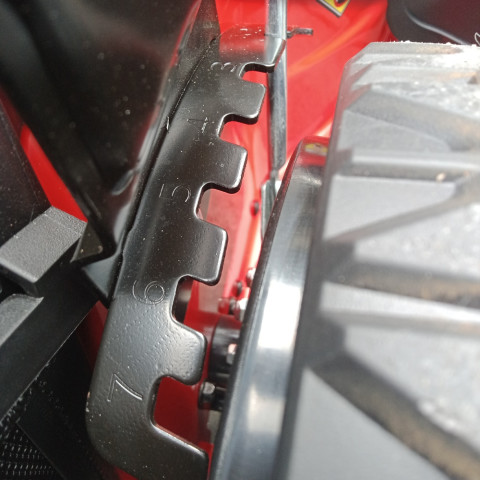 ปรับระดับความสูงการตัดได้ 7 ระดับ ตั้งแต่ 25–75 มม. รองรับทั้งหญ้าสั้นเรียบและหญ้ารกสูง