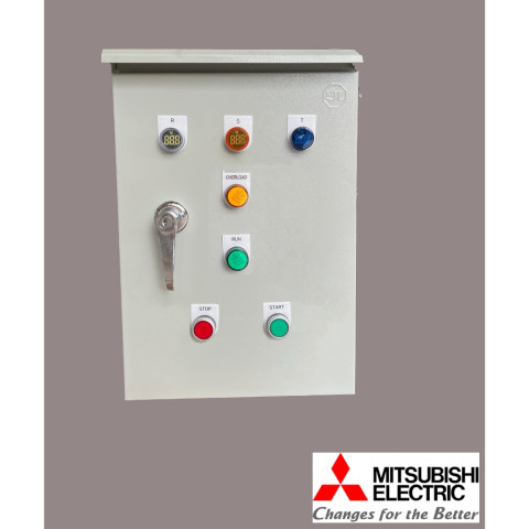 ตู้ควบคุมมอเตอร์ปั๊มน้ำ 3 เฟส 380V Mitsubishi รุ่น OP4 แบบกันน้ำ มาพร้อมระบบป้องกันไฟตก ไฟเกิน และการทำงานแบบกดปุ่มสตาร์ท (Start) / สต็อป (Stop) ช่วยให้การควบคุมปั๊มน้ำของคุณปลอดภัย ใช้งานง่าย และรองรับการทำงานต่อเนื่องได้เป็นอย่างดี เหมาะสำหรับงานระบบน้ำในบ้าน ฟาร์ม โรงงาน และงานอุตสาหกรรมทั่วไป