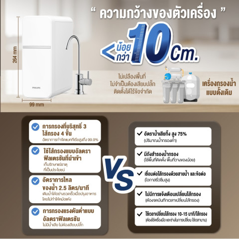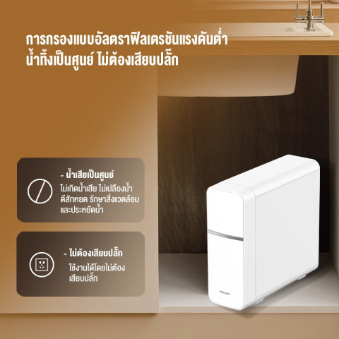 Philips Water Purifier AUT1211 เครื่องกรองน้ำดื่มระบบ UF กรองละเอียด 0.01 ไมครอน กักเก็บแร่ธาตุ ได้รสชาติน้ำที่ดีขึ้น พร้อมจุดเด่น “ไม่มีน้ำทิ้ง” ช่วยประหยัดน้ำ ใช้งานง่าย ไม่ต้องเสียบปลั๊ก และยังแถมฟรี ก๊อกน้ำไร้สารตะกั่ว เพื่อความมั่นใจทุกแก้วที่ดื่ม