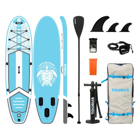 สนุกกับการพายแบบมือโปรได้ง่ายๆ กับ ซับบอร์ดสูบลม บอร์ดเต่าสูบลม ขนาด 10'6 x 32" x 6" บอร์ดทรง Touring ที่ออกแบบมาเพื่อการทรงตัวง่าย ใช้งานสะดวก พกพาไปเที่ยวได้ทุกที่ มาพร้อมดีไซน์สีฟ้าเท่ๆ ตัดกับลายเต่าโทนเทา-ส้ม ให้ลุคสปอร์ตแต่ยังดูเป็นมิตร เหมาะทั้งสำหรับมือใหม่และสายชิลที่ชอบพายเล่น พักผ่อน และออกกำลังกายบนผืนน้ำ