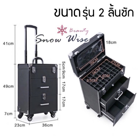 ดีไซน์ภายนอกเป็นทรงตู้แข็งแรง มุมหุ้มอลูมิเนียม เพิ่มความทนทานต่อแรงกระแทก สเปคแบบ “2 ลิ้นชักปีกดำลายเพชร” ดีไซน์ปีกเปิดข้างช่วยให้หยิบของได้สะดวก ลายเพชรหรูหรา ดูมืออาชีพทุกมุมมอง ทั้งยังสามารถใช้เป็นกระเป๋าเดินทางล้อลากหรือเป็นตู้จัดเก็บเครื่องสำอางภายในบ้านได้อีกด้วย