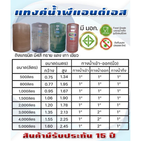 ขนาดใหญ่จุใจ 5,000 ลิตร เหมาะสำหรับสำรองน้ำช่วงน้ำไม่ไหล/หน้าแล้ง ใช้ได้ทั้งบ้านและงานเกษตร