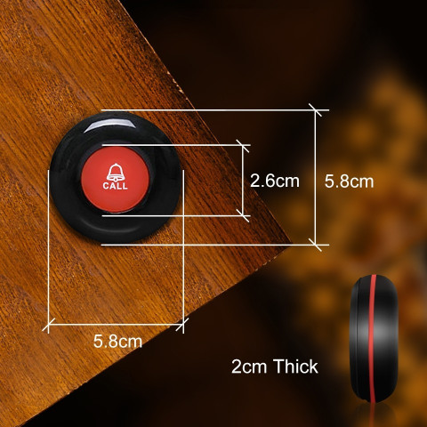 สามารถติดตั้งปุ่มเรียกบนโต๊ะ/ผนังด้วยสติกเกอร์ หรือพกใส่กระเป๋า/คล้องคอเพื่อความสะดวก