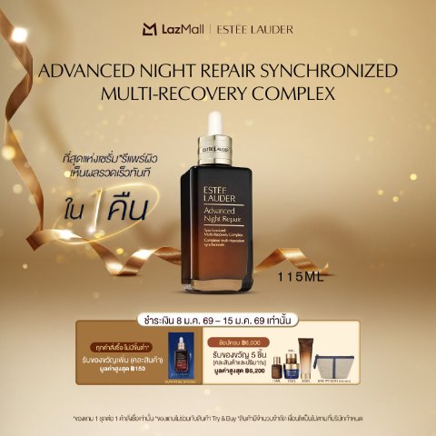 เอสเต ลอเดอร์ Estee Lauder Advanced Night Repair Synchronized Multi-Recovery Complex 115ml เซรั่มฟื้นบำรุงผิวยามค่ำคืนที่ครองใจผู้ใช้มายาวนาน *ขายดีอันดับ 1 ในไทยและเอเชีย 11 ปีซ้อน** ด้วยสูตรก้าวล้ำที่ช่วยให้ผิวดูอ่อนเยาว์ เปล่งประกาย และชุ่มชื้นล้ำลึก พร้อมสัมผัสเนื้อเซรั่มบางเบา ซึมไว ไม่เหนอะหนะ เหมาะกับทุกสภาพผิว