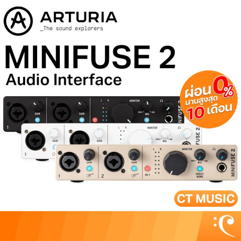 Arturia MiniFuse 2 ออดิโออินเตอร์เฟส (Audio Interface) ราคา 8,490.00 บาท ออดิโออินเตอร์เฟสขนาดกะทัดรัดที่ให้เสียงคมชัดระดับสตูดิโอ เหมาะทั้งงานอัดร้อง อัดกีตาร์ ทำเพลง ไลฟ์สตรีม พอดแคสต์ และครีเอเตอร์ที่ต้องการความง่ายแบบเสียบแล้วใช้งานได้ทันทีด้วยการเชื่อมต่อ USB-C พร้อมฟังก์ชันสำคัญครบ ทั้ง Phantom Power 48V, MIDI I/O และ Virtual Loopback สำหรับงานออนไลน์