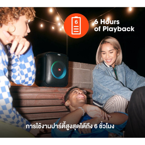 ยกระดับปาร์ตี้ให้สนุกสุดมันด้วย Partybox Encore Essential ลำโพงพกพากำลังขับ 100W RMS ให้เสียงดังเต็มพลัง เบสแน่น พร้อม Dynamic Light Show ไฟเต้นตามจังหวะเพลง เติมบรรยากาศให้ทุกโมเมนต์คึกคัก จะเปิดเพลงชิล ๆ หรือสายปาร์ตี้ก็เอาอยู่