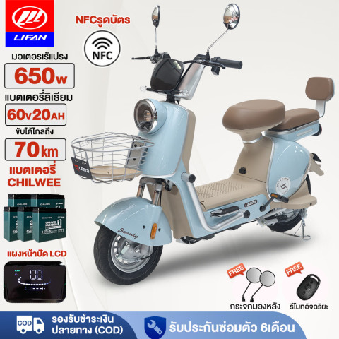 [ติดตั้ง99%] LIFAN จักรยานยนต์ไฟฟ้า 650W 60V20Ah มอเตอร์ไซค์ไฟฟ้าสำหรับผู้ใหญ่ ขับสนุก แรงดี ประหยัดพลังงาน มาพร้อม NFC รูดบัตร และรีโมทอัจฉริยะ เพิ่มความสะดวกและความปลอดภัยในการใช้งาน เหมาะทั้งขับไปทำงาน ไปตลาด หรือใช้งานในชีวิตประจำวัน ด้วยความเร็วสูงสุด 50 กม./ชม. และระยะทางต่อการชาร์จประมาณ 50–70 กม.