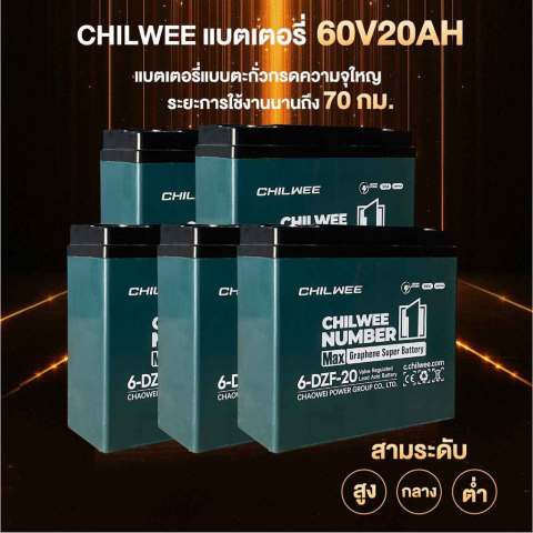 แบตคุณภาพ CHILWEE/TIANNENG 60V 20Ah วิ่งได้ราว 50–70 กม./ชาร์จ พร้อมความเสถียรและปลอดภัย