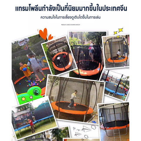 ขนาดใหญ่ เล่นได้ทั้งครอบครัว พื้นที่กระโดดกว้าง เหมาะสำหรับกิจกรรมร่วมกัน เสริมความสนุกและการออกกำลังกายในทุกวัน