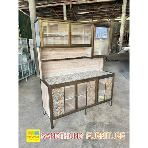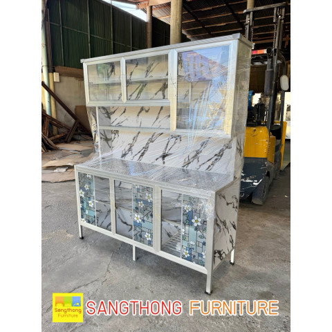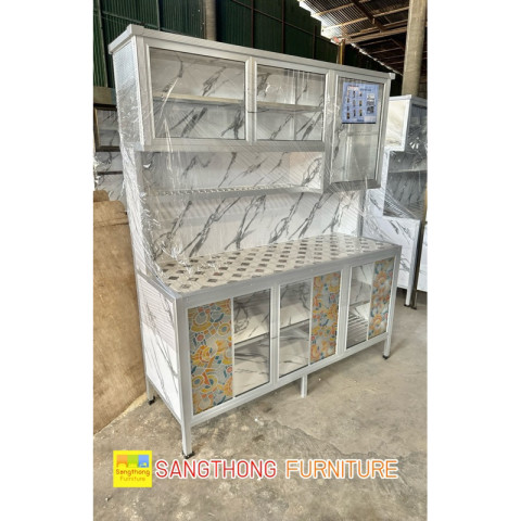 ตู้ครัวอลูมิเนียม 150 ซม. หน้ากระเบื้อง ดีไซน์โค้งทันสมัย ใช้งานคุ้มค่า เหมาะสำหรับจัดระเบียบพื้นที่ครัวทั้งในบ้านและคอนโด โครงสร้างแข็งแรง ดูแลง่าย หน้าท๊อปกระเบื้องช่วยให้ทำความสะอาดสะดวก และใช้งานงานครัวหนักๆ ได้อย่างมั่นใจ