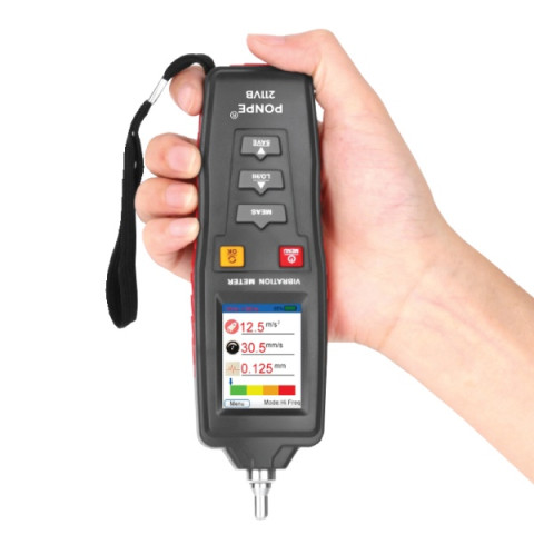PONPE 211VB เครื่องวัดแรงสั่นสะเทือนแบบพกพา ที่ออกแบบมาสำหรับงานตรวจเช็คสภาพเครื่องจักร งานซ่อมบำรุงเชิงป้องกัน (PM) และงานตรวจสอบความผิดปกติของมอเตอร์/ปั๊ม/พัดลม/ชุดส่งกำลัง ให้การวัดได้ครบทั้ง ความเร่ง (Acceleration), ความเร็ว (Velocity) และ ระยะกระจัด (Displacement) พร้อมหน้าจอสี อ่านค่าได้ชัด และรองรับการบันทึกข้อมูลเพื่อเรียกดูภายหลัง