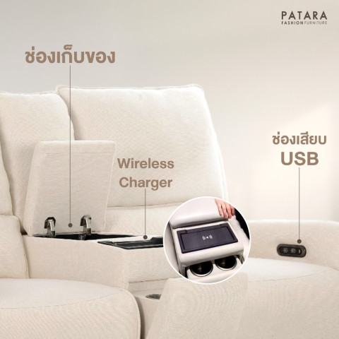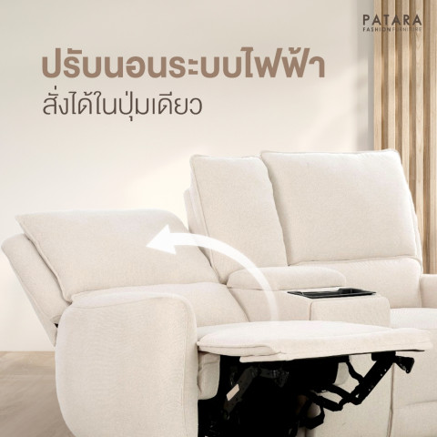PATARA โซฟาปรับไฟฟ้า รุ่น TWINS โซฟารีไคเนอร์ 2 ที่นั่ง ดีไซน์ทันสมัย ฟังก์ชั่นครบครันในตัวเดียว เหมาะสำหรับห้องนั่งเล่น คอนโด หรือห้องดูหนังส่วนตัวของคุณ ให้คุณเอนกายพักผ่อนอย่างเต็มที่ด้วยระบบปรับเอนนอนแบบไฟฟ้า ใช้งานง่ายเพียงปลายนิ้วสัมผัส พร้อมคอนโซลอเนกประสงค์ที่ออกแบบมาเพื่อไลฟ์สไตล์ยุคดิจิทัล