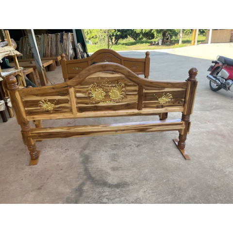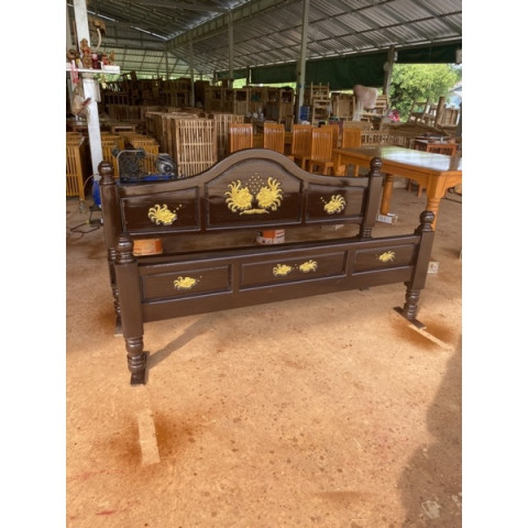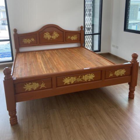 เตียงนอน 6 ฟุต ไม้สักแท้แกะลายปลาแต้มทอง ดีไซน์หรูหราแบบไทยๆ ผสานความเป็นธรรมชาติของไม้สักแท้ 100% กับงานแกะสลักลายปลาแต้มทองอย่างประณีต ให้บรรยากาศห้องนอนของคุณดูอบอุ่น สง่างาม และมีเสน่ห์ไม่เหมือนใคร