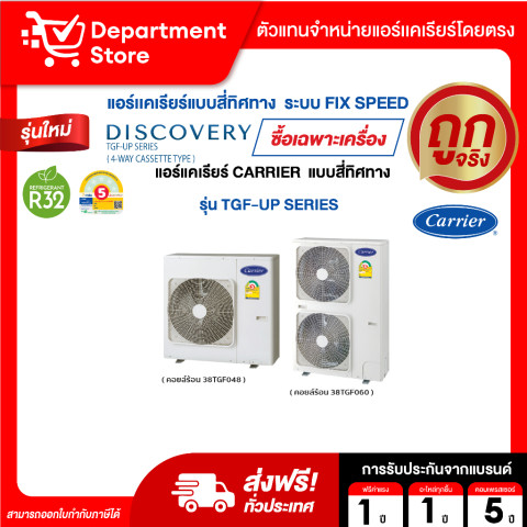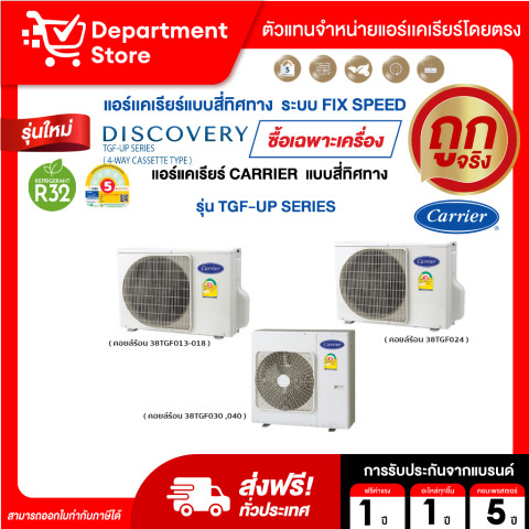 สัมผัสความเย็นสบายรอบทิศทางอย่างเหนือระดับด้วย แอร์แคเรียร์ CARRIER แบบสี่ทิศทาง FIX SPEED ประหยัดไฟเบอร์ 5 รุ่น TGF-UP SERIES เครื่องปรับอากาศฝังฝ้าเพดานที่ออกแบบมาเพื่อตอบโจทย์การใช้งานในอาคารสำนักงาน ร้านค้า ร้านอาหาร โชว์รูม รวมถึงที่พักอาศัยที่ต้องการความเย็นทั่วถึง ดูหรูหรา และประหยัดพลังงานในเวลาเดียวกัน มาพร้อมการรับประกันจากศูนย์ CARRIER แท้ มั่นใจได้ในคุณภาพและความคุ้มค่า