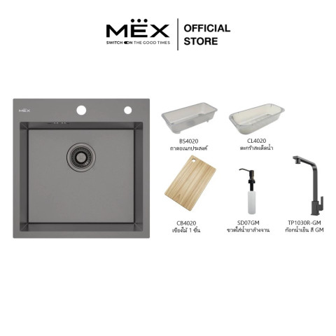 MEX รุ่น SQ50GM-MF อ่างล้างจาน 1 หลุม ขนาด 50 x 51 ซม. (สี Grey Metal) ยกระดับครัวให้สวยโมเดิร์นและใช้งานได้ครบในจุดเดียว ด้วยดีไซน์มัลติฟังก์ชันที่รวม “ล้าง–เตรียม–สะเด็ด–จัดเก็บ” ได้อย่างเป็นระเบียบ ตอบโจทย์ครัวยุคใหม่ที่ต้องการความคล่องตัวและพื้นที่ใช้งานคุ้มค่า ในราคา 8,393.00 บาท